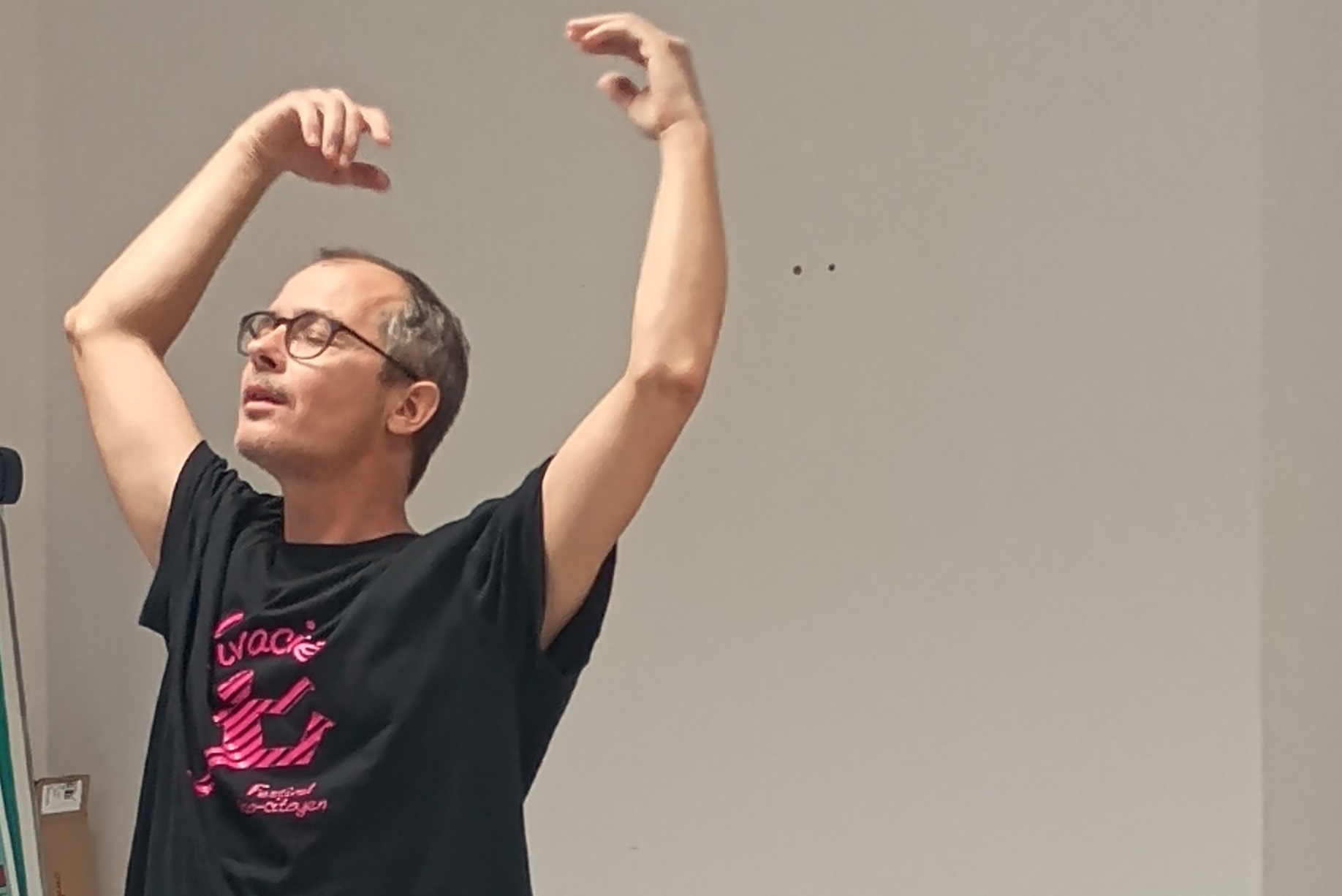 Le spectacle Scroll est proposé en deux formats. Un format "salle" et un format "espace public".